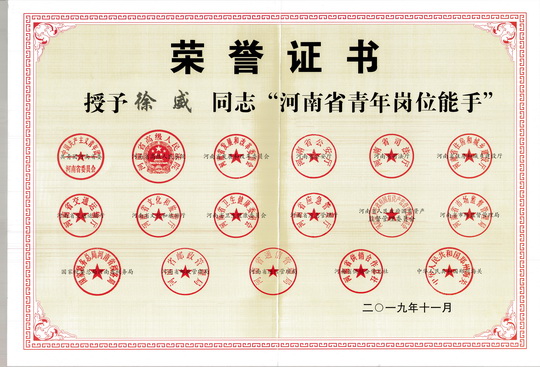 近日,由共青團河南省委、河南省高級人民法院、河南省發(fā)展和改革委員會(huì )、河南省公安廳等17家單位經(jīng)綜合考察,逐級推報、擇優(yōu)評選、社會(huì )公示,共同評選的"2017-2018年度河南省青年崗位能手"表彰文件印發(fā),公司工程院青年技術(shù)員工徐威同志獲得了本項榮譽(yù)。